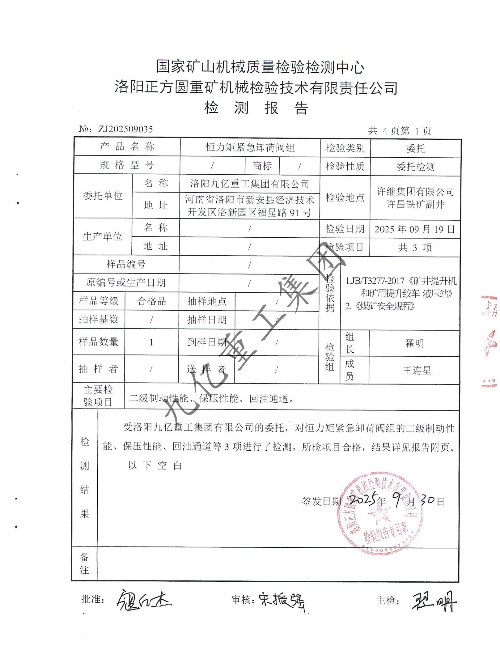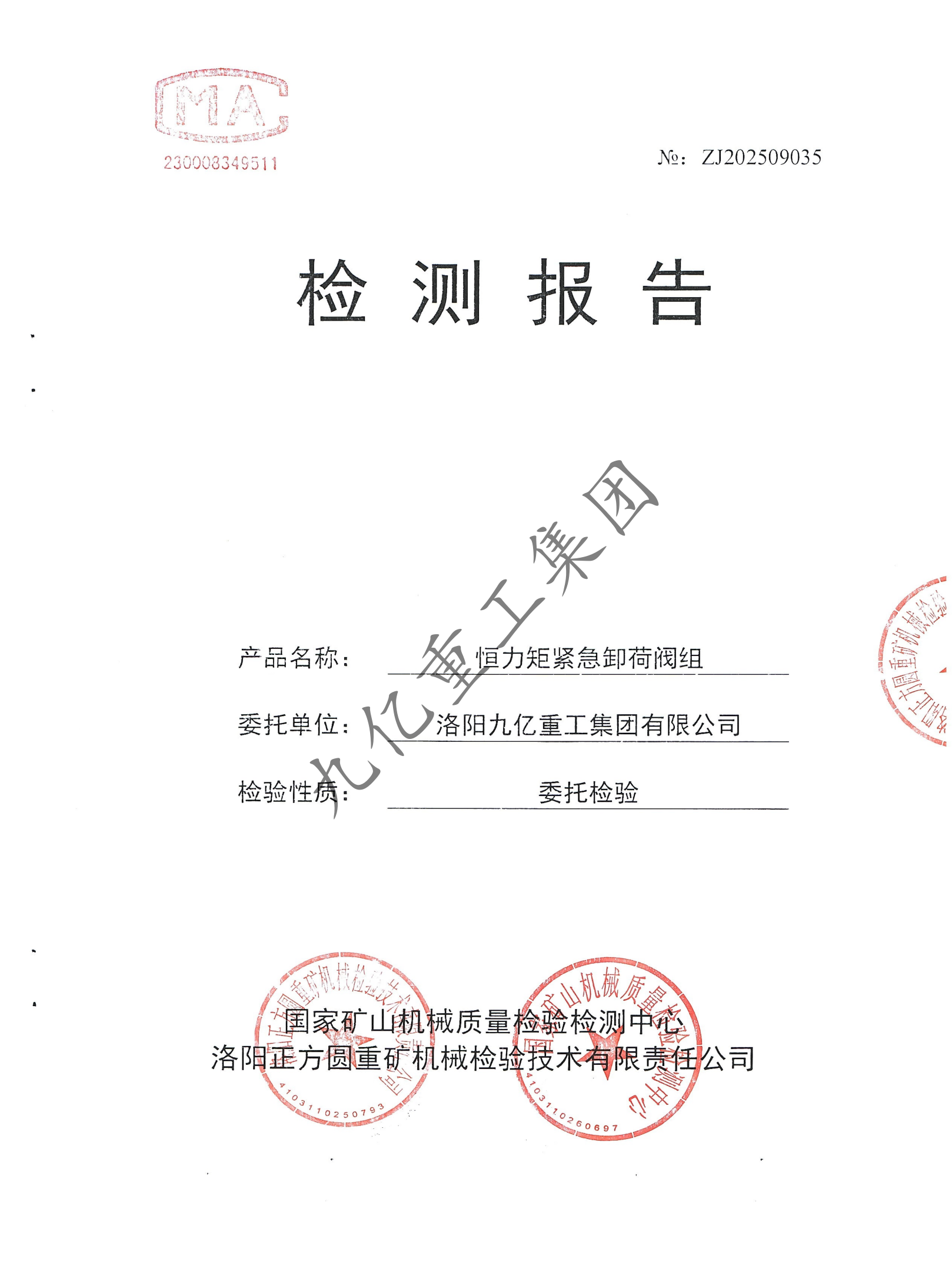 恒力矩緊急卸荷閥組檢驗報告